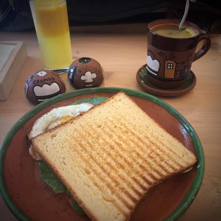 Jeg fant Crumbs første gang i 2016, og det ble en favoritt allerede da. Enkel og tiltalende. Her kan du starte opp en PC og begynne å skrive litt, uten at noen reagerer på det. Utover dagen er mange av de små bordene på Crumbs okkupert av mennesker som gjør det samme som meg.