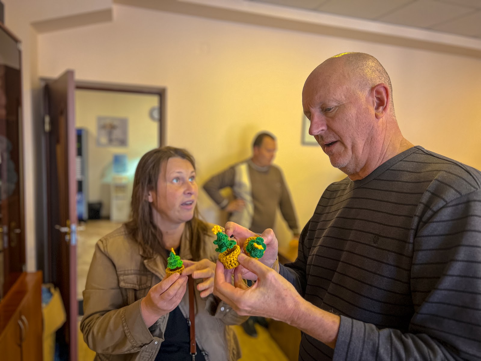 — Dere kan møtes jevnlig i disse lokalene, men håndarbeidet gjør dere når det passer dere og dere bestemmer selv omfanget av arbeidet. Nå handler det om juletrærne. I framtida kan det handle om andre produkter. Vi har 23 ulike grupper med kvinner rundt omkring i landet som gjør det samme. Noen av dem jobber mindre, noen jobber mer. For noen er dette deres hovedinntekt, forteller Tim Straigth til kvinnene.
