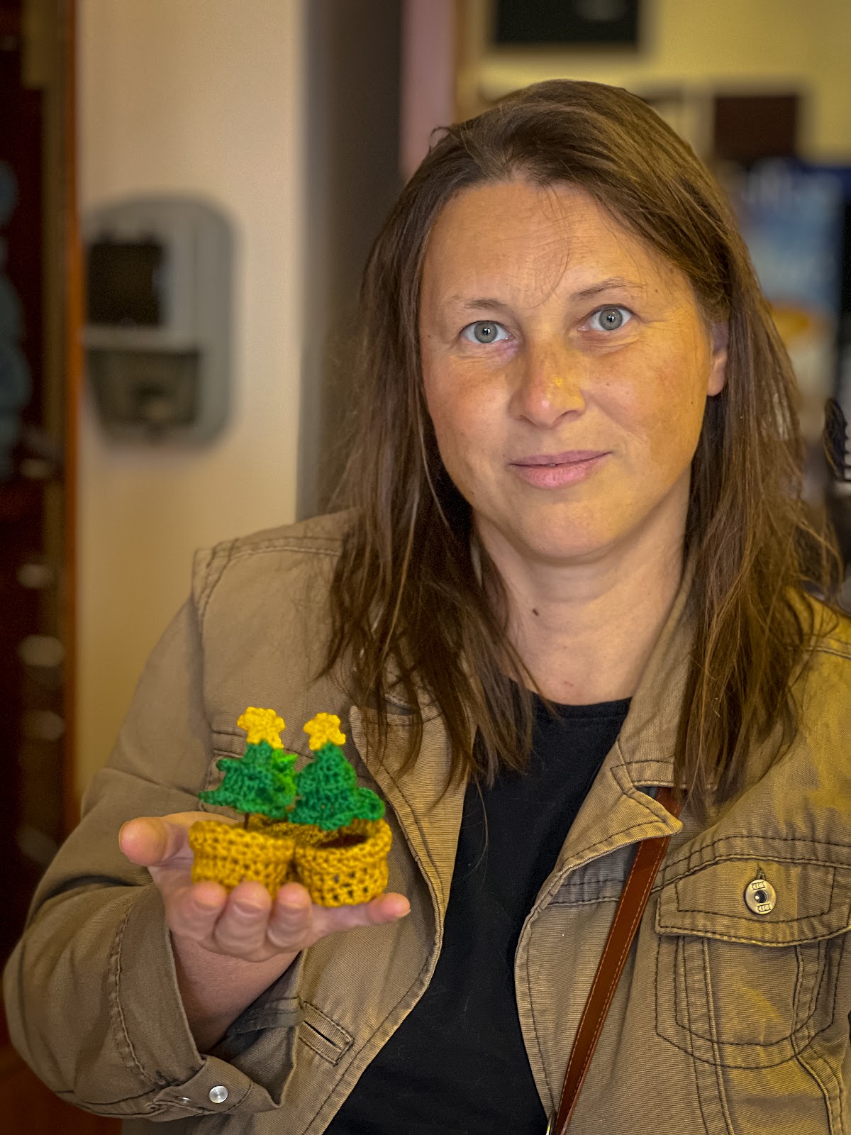 I Gyumri møter vi også russiske Olga Elsakova. Hun var kritisk til Putins krigføring i Ukraina og protesterte åpenlyst, noe som førte til flere advarsler fra politiet. Situasjonen ble så utrygg at Olga Elsakova valgte å flykte med familien til Armenia i mars 2022. Her kom hun etterhvert i kontakt med Tim Straight og Homeland. Nå er den russiske flyktningen sentral i Homelands arbeid for karabakh-armenerne. Hun står bak designet av juletreet som skal produseres av kvinner fra Nagorno-Karabakh, og selges til dem som ønsker å gi sin støtte.