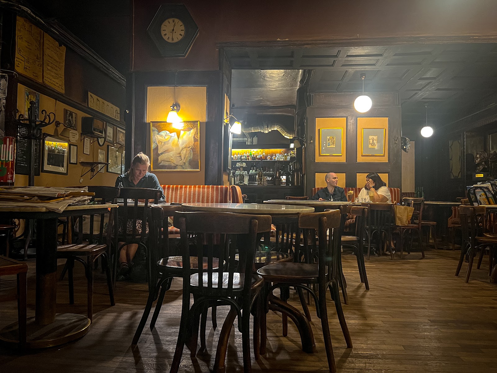 På Café Hawelka er det små forandringer siden G. E. R. Gedye og hans journalistkollegaer fulgte med på de dramatiske hendelsene i den østerrikske hovedstaden i mellomkrigstida. Her ligger historiene ligger i de brune veggene. Foto: Roger Rein