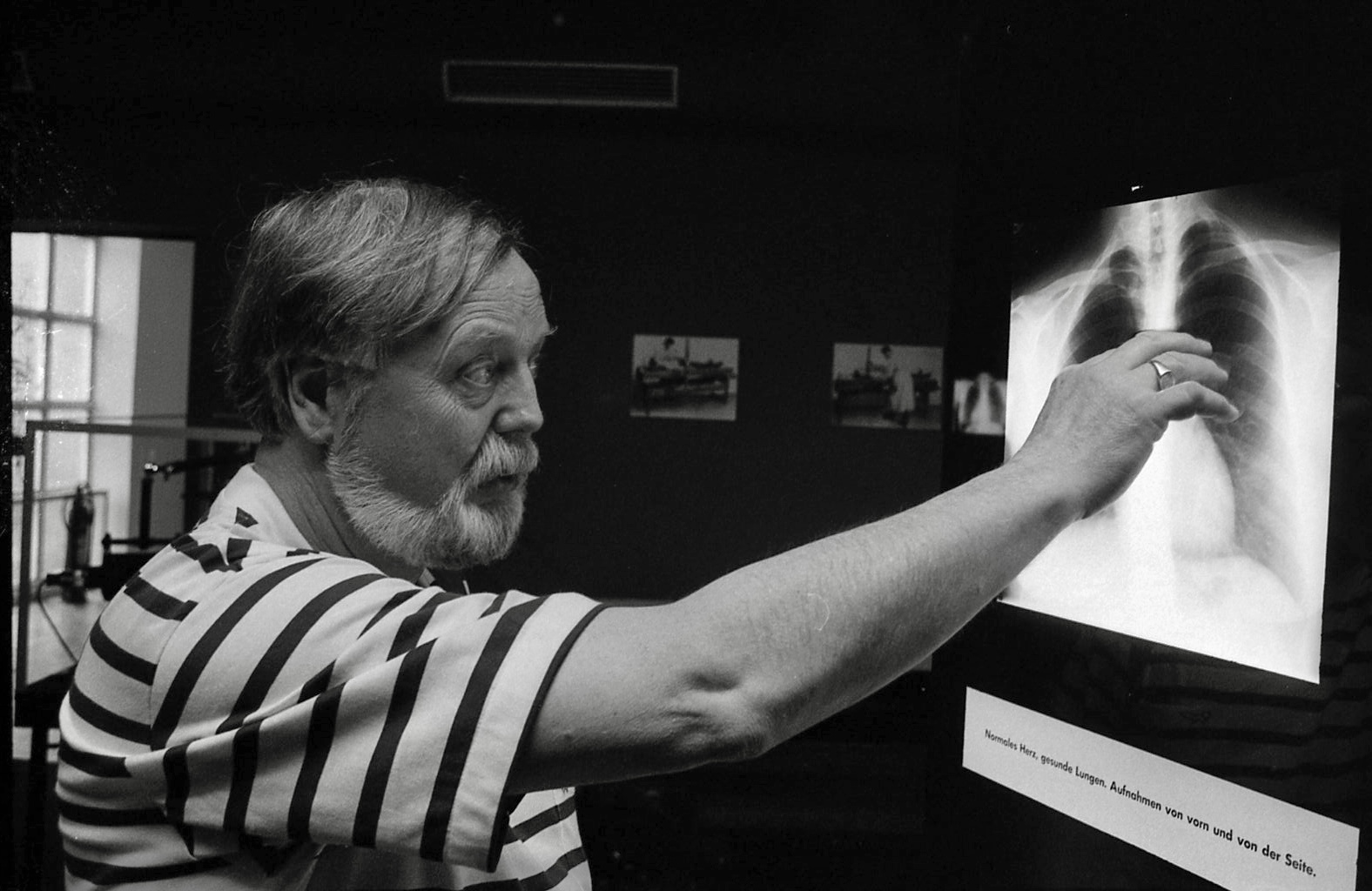 Forfatteren Dag Skogheim under studieturen i Tyskland og Østerrike i mai 1989. Her besøker vi røntgenmuseet i Lennep. Den tidligere tuberkulospasienten hadde stor interesse av dette besøket.