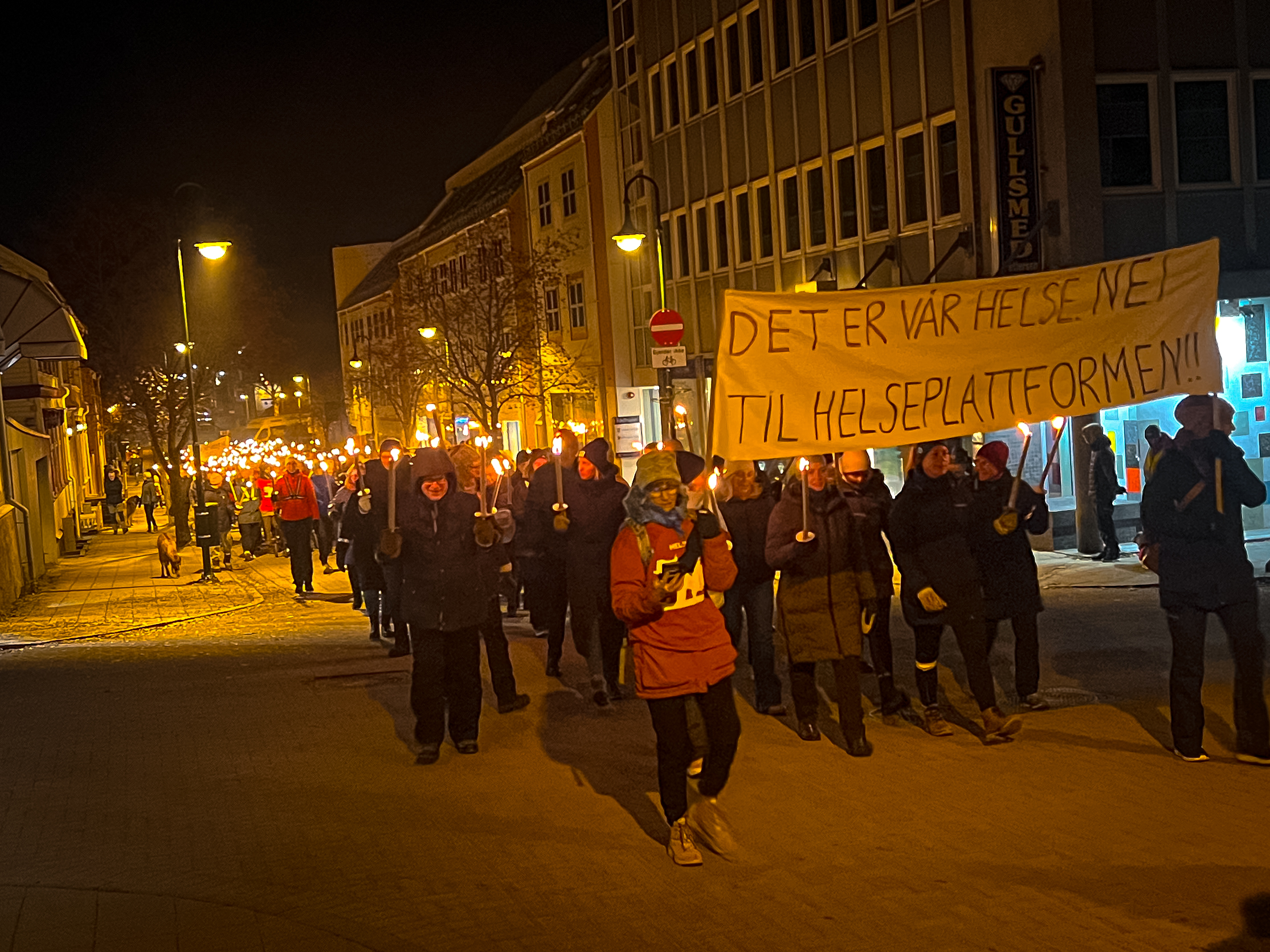 I Levanger var vi en sterk gruppe på over 500 som trosset kulden og markerte vår motstand mot Helseplattformen. Samtidig ble tilsvarende arrangementer arrangert i Namsos, Trondheim, Kristiansund, Volda, Ålesund og Molde.