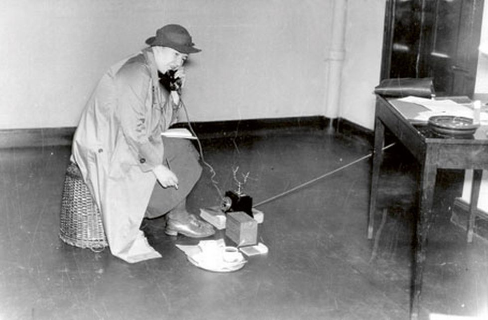 Forholdsreglene med forhengene ble tatt så journalisten ikke skulle se hvor de dro. Politimannen som fulgte henne i bilen var Ola Ahlgren fra Verdal,