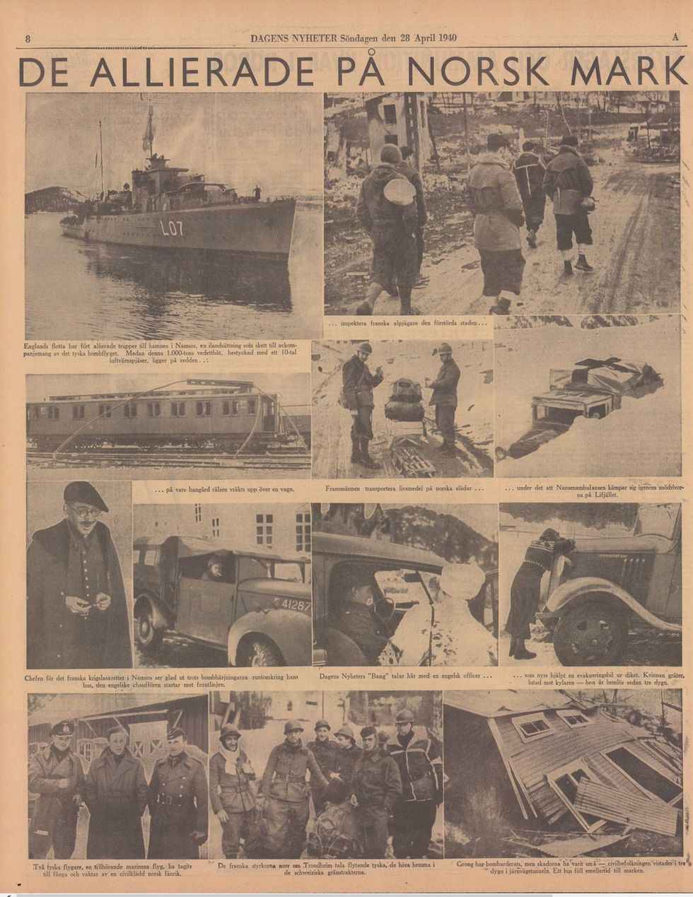 De svenske leserne får også vite om innsatsen til de mange norske som er med og hjelper. Tolkene som er stilt til de engelske offiserenes disposisjon. Om de norske lottene som arbeider dag og natt for nordmenn, briter og franskmenn.