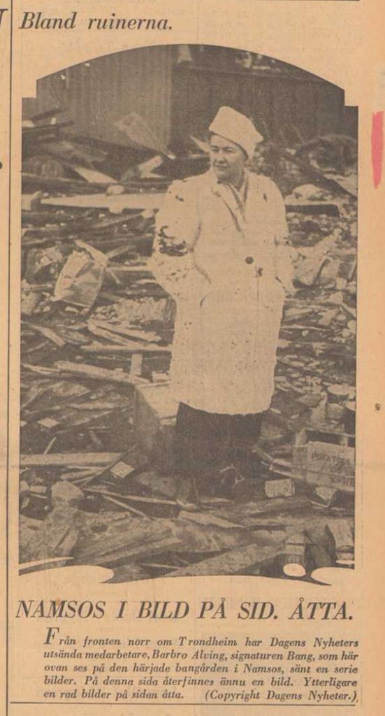 Før vi går videre, før sønnen tollbestyrer Bjørn Rygg kommer inn i historien, kontakter lensmann Jon Suul, og får Barbro Alving videre nedover Verdal, må vi gjøre oss mer kjent med den svenske journalisten. Hun som skrev flere artikler fra vårt område krigsvåren for 80 år siden, og som nå er en viktig kilde for de som ønsker å forstå det som skjedde her på den tida.