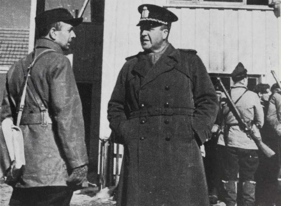 En nordnorsk veg i kveldingen, nå med sine barrikader i sikk-sakk av tomme bensinfat og tømmerstokker, bevoktet av norske bajonettposter i stålhjelmer, kunne være en utfartsveg fra Praha i svart krise, en krigsveg fra Madrid (…) Finland spøker på et annet vis og; hvitmalte biler og biler med laken i en blåsig bukt over radiator og tak har allerede begynt å kjøre på vegene, og norske skipatruljer har begynt å operere i mindre skala i Trøndelags terreng.