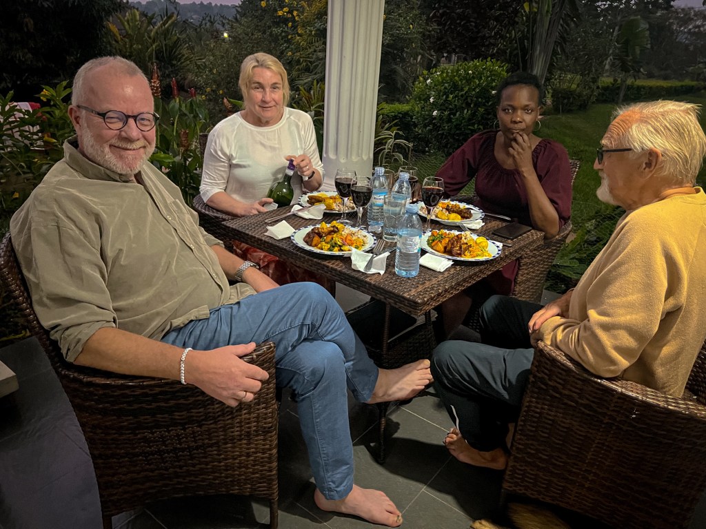 Nå er klokka 18.45 på en fredelig søndag kveld begynner det å mørkne. Her på Ekvator-linjen er dagen nøyaktig like lang som natten. Vi sitter på terrassen og roer ned før middagen blir servert. En ny kokk ankom i dag, og han har fått frie tøyler til kveldens middag. Vi er spente på kveldens måltid, men er også trygg på at kokken vil gjøre sitt for å imponere oss.