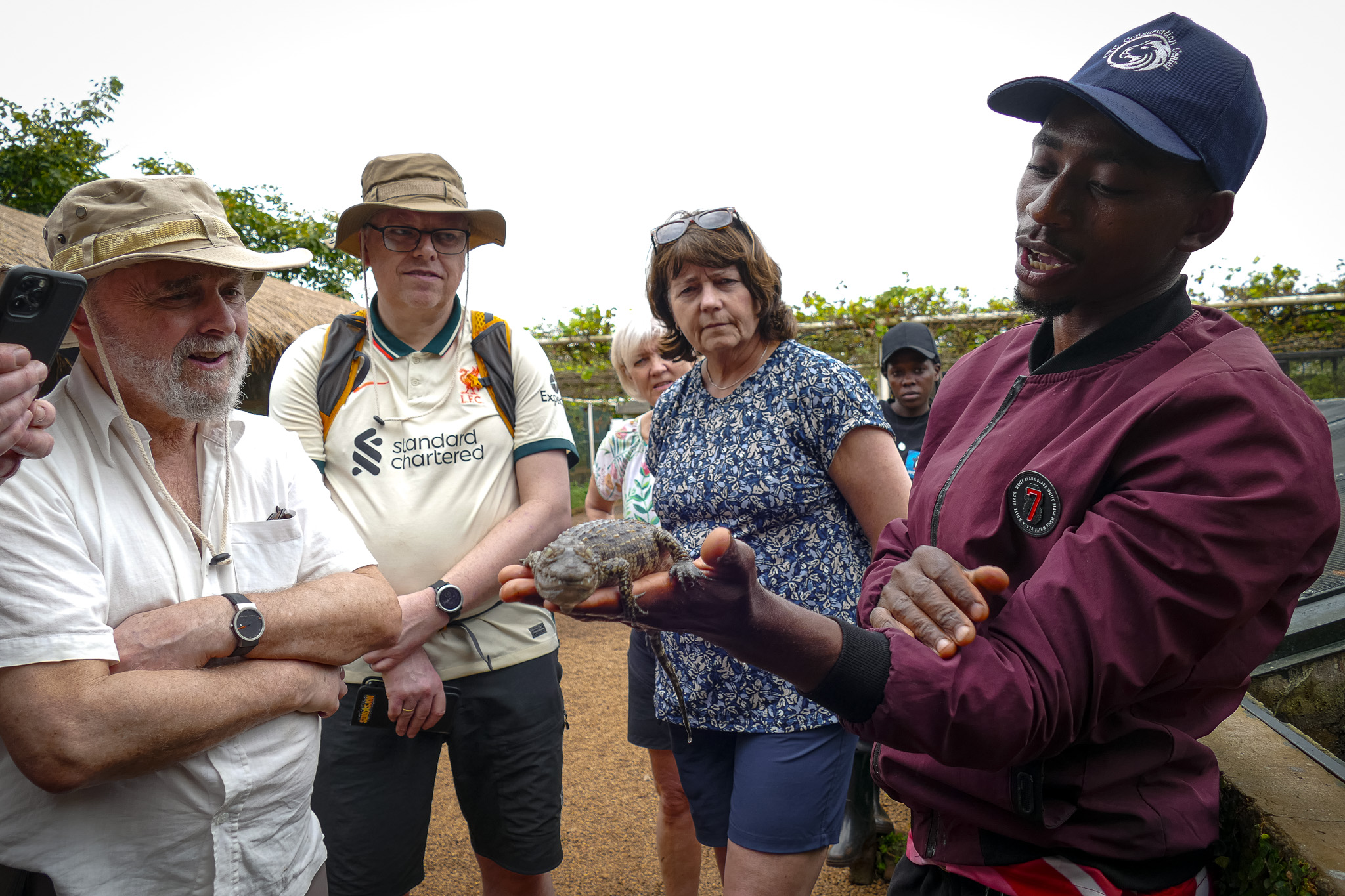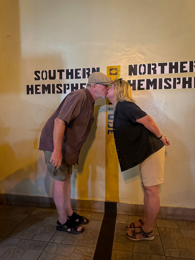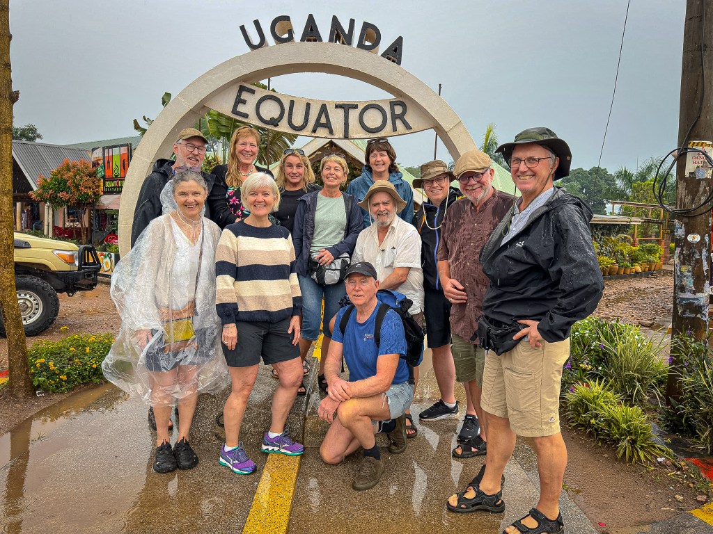 Fra morgenen på torsdag regnet det. Det bød ikke på så store problemer da vi besøkte Uganda Equator og fikk stå med et bein på hver side av ekvatorlinja. Eller gjennomføre et kyss på hver side av linja.