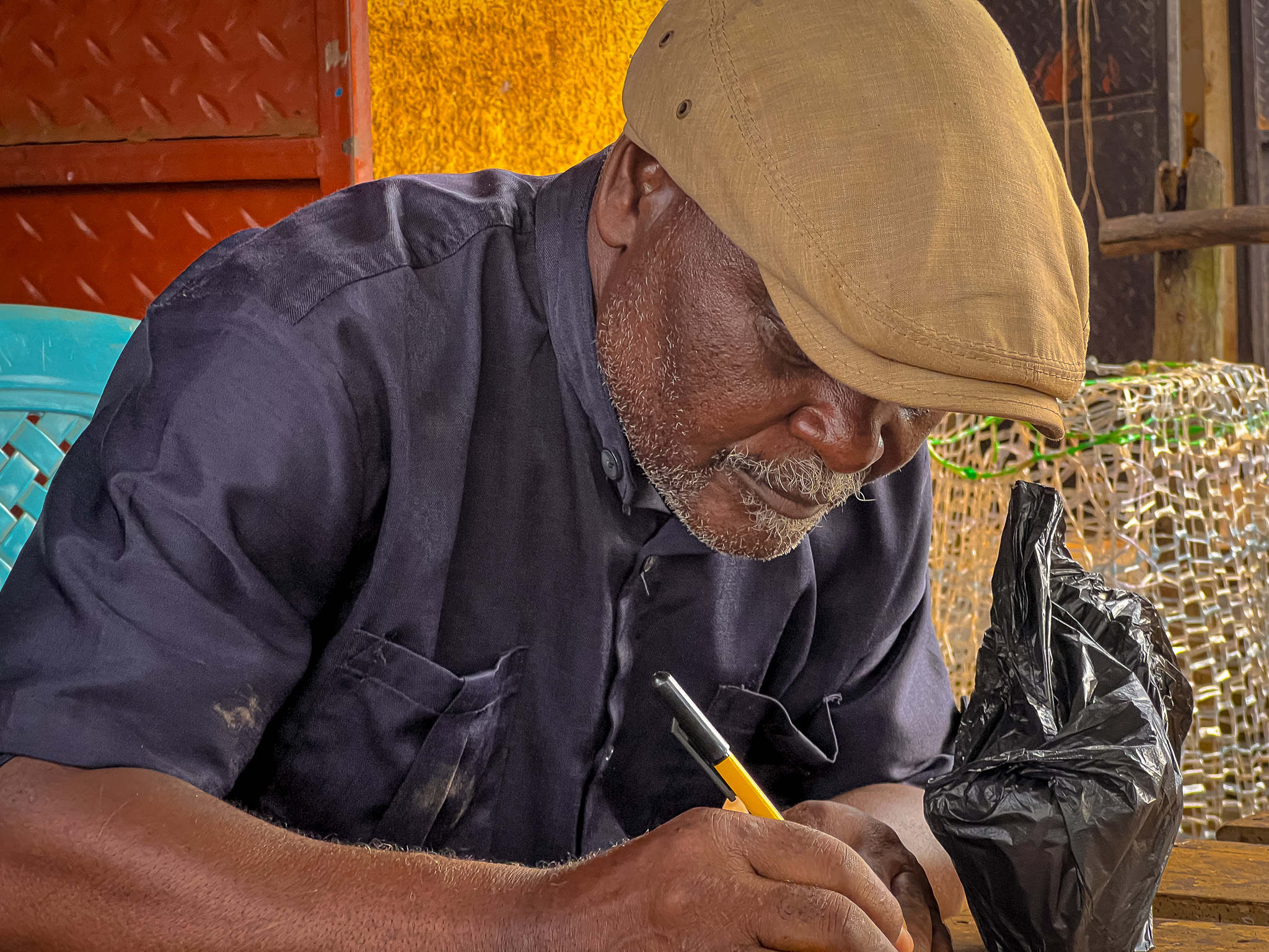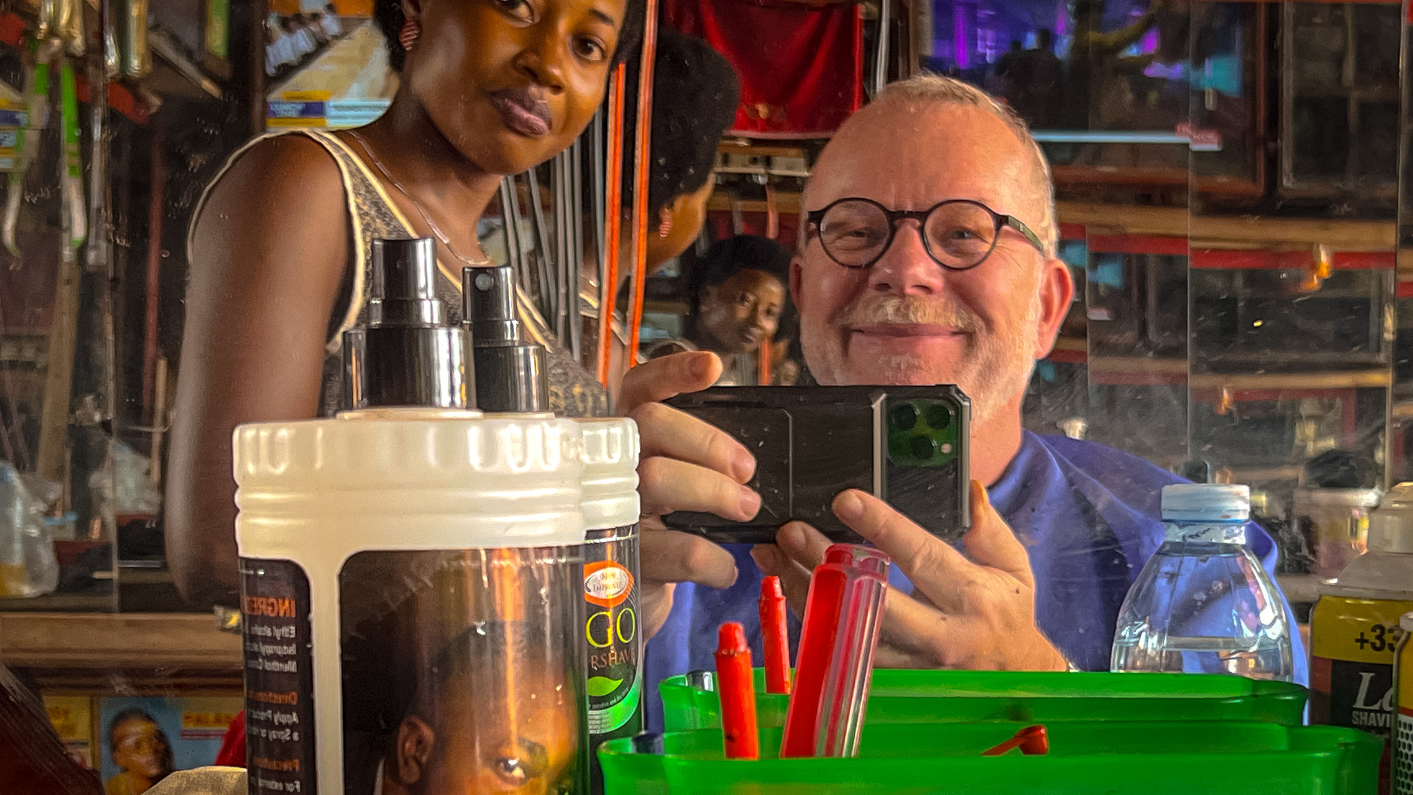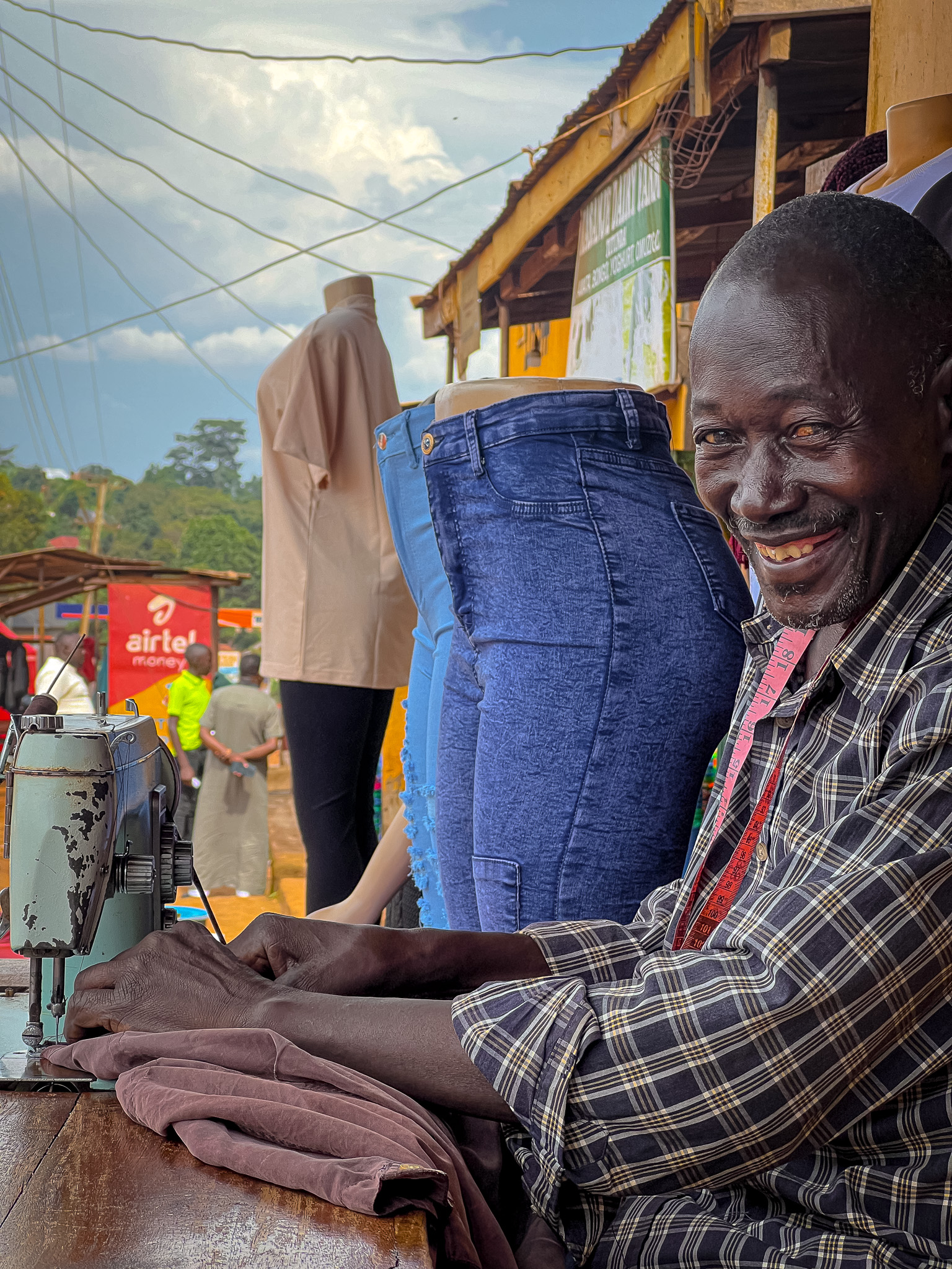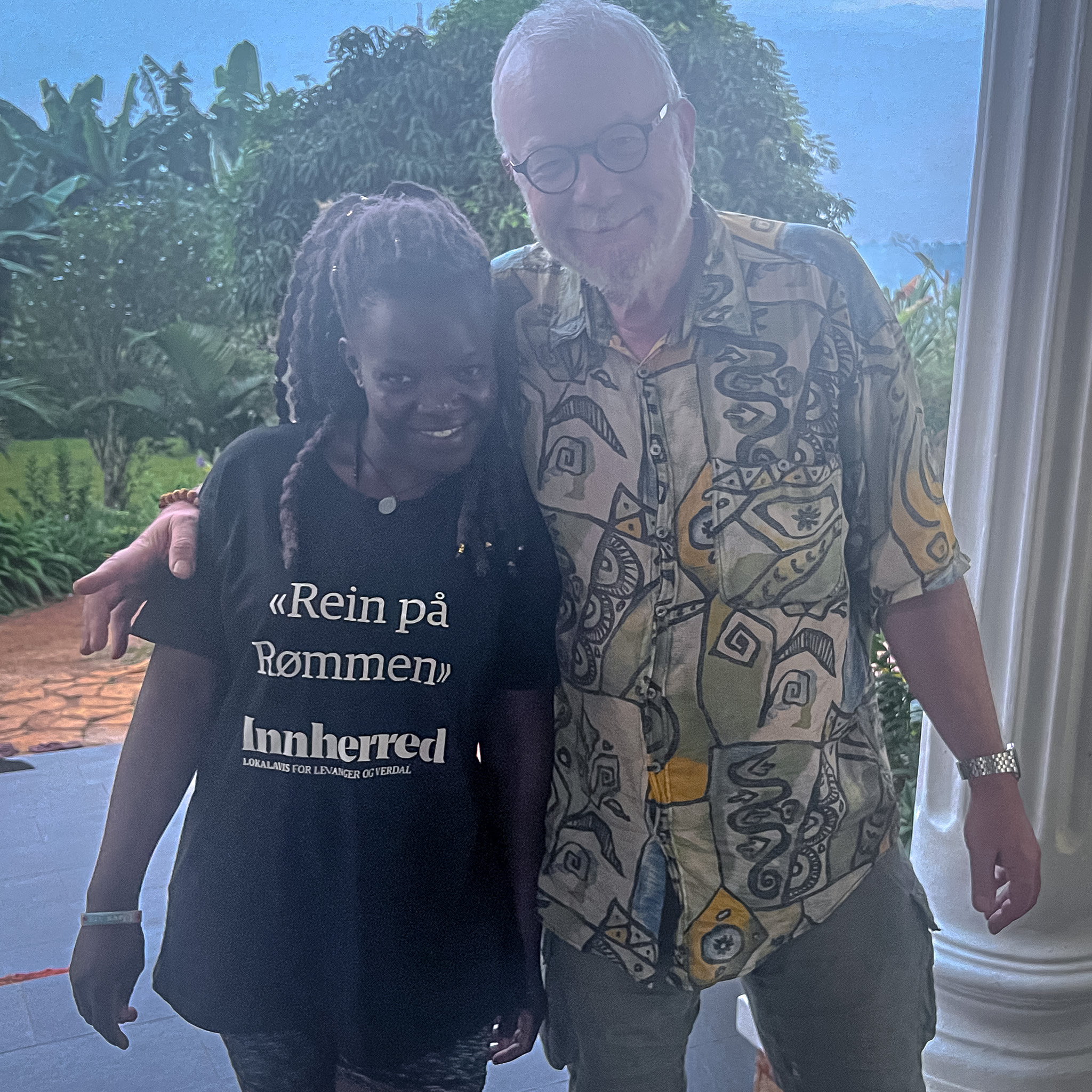 Jeg ble litt hensatt til gamle dager i Norge, da vi hadde partiaviser og aviser som støttet det ene eller det andre synet. New Vision er regjeringsorganet i Uganda, og en klar støttespiller til president Museveni. Avisa har historie tilbake til kolonitiden, og ble etablert i 1955. Fra 1986 endret den navn til New Vision. Barbra Kaija har vært sjefredaktør i avisa siden 2010.Skjorteselgeren Abdoka Vesa selger skjorter, skjørt, kjoler og andre klær på markedet i Kasanje. Første gang jeg traff ham kjøpte jeg en langermet skjorte av ham. Helt grei og billig. 10.000 shilling, 30 kroner betalte jeg for skjorten. Neste markedsdag kjøpte jeg enda en skjorte. Da fikk jeg den for 9.000 shilling. Og siste og tredje gang ble det også et skjortekjøp hos Abdoka. En sjokkrosa god langermet kveldskjorte. Nå satte han prisen til 8.000 shilling. Og like blid var selgeren, selv om jeg ikke fikk fram hans varme smil på dette bildet.Dette er skredderen min i Kasanje. Tror ikke jeg fikk navnet på ham. På bildet reparer han min brune gode silkeskjorte, kjøpt hos min faste skjortehandler i Gamla Stan (som nå er nedlagt dessverre). For å få den til å holde lengre fikk jeg den reparert i Kasanje. Også min blå langermede silkeskjorte fra samme plass trengte en overhaling. Han tok av snippen og sydde på en rund åpning. 1000 shilling (tre kroner) var prisen han satte begge ganger. Skammelig lavt, så jeg betalte ham 4000 shilling (12 kroner). Jeg ødelegger markedet i Kasanje, påstår Hans. Det tror jeg ikke noe på.Skredderen i arbeid. Han sitter på kanten foran en av de små butikkene som ligger i rekke nedover markedsgata i Kasanje. Jeg tror jeg må finne noen klær for lapping også neste gang jeg kommer til byen.Da vi dro ned til Mabamba, sumpen ved Viktoriasjøen, for å se om dette var et godt tilbud til den norske gruppen møtte vi Maria Nayondo. I 20 år har hun drevet med business her. Tatt turister ut i båter slik at de kan få sett den sjeldne shoebill (treskonebb) på nært hold. Vi bestilte i god tid, og Maria passet på å sende meg meldinger titt og ofte for å forsikre seg om at vi kom. Det gjorde vi og vi fikk en fin tur. Hun var guiden i båten som jeg satt på. En stødig ugandisk kvinne.Her er en annen som var flink til å vise fram fugler. Henry var guiden på båtturen vår i Nilen-deltaet ved Albertsjøen tidlig søndag morgen. Her er han i samtale med Torbjørn Skei. Den erfarne guiden har et godt blikk for det som rører seg, og tok oss fra det ene flotte skuet til det neste. Da han fant den store Nil-krokodillen liggende på en flyteøy oppdaget han den selvfølgelig lenge før noen av oss andre. Men til stor glede for oss alle sammen. Han fortjente noen kroner ekstra for turen etter den oppdagelsen.Mor og datter, Teo og Rita, traff jeg i deres enkle bar ved ferjeleiet Nakiwogo i Entebbe. 3500 shilling, rundt 10 kroner, skulle de ha for en kald Club. Den smakte godt etter at jeg hadde vandret fem – seks kilometer langs vegen denne mandag morgenen. Om ølet kjølet meg ned ble jeg varm av de to damenes smil. Det er sånne du kommer i godt humør av.En annen som får meg til å le ofte og lenge er David, iren som gjorde nordmann av seg og har vært lege i Norge i flere tiår. Han er full av gode historier, og klarer å lage morsomheter av det meste. Hans fortelling om det første møtet med vestlands smalahove kunne utkonkurrert de fleste standup-artister. Jeg lo så jeg ristet i lang tid. David Mac Donahan er bosatt halve året på Ranheim, og halve året her på åsen i Akright, mellom Entebbe og Kampala. Her bygger han hus sammen med ugandiske Elisabeth. De to er, som mange andre her i landet, sterkt engasjert i humanitært arbeid med en skole for foreldreløse barn og et nytt initiativ som skal bygge opp et tilbud til kreftoverlevende i Uganda. Vi kommer nok til å holde kontakten framover.Jeg ble fascinert av denne bardamen på den enkleste baren du kan tenke deg i Kasanje. Vi satt på noen enkle trebenker i et knøttlite rom. Det var ikke nei i hennes munn da jeg spurte henne om å få tatt et bilde. «Jeg kommer tilbake med en gjeng nordmenn om to uker», lovte jeg.Jeg holdt mitt løfte. Her er Halvor, Hallfrid og Lars Erik på plass i baren. Etterhvert dukket hele gjengen opp. Da var barkvinnen kjempefornøyd med dagens omsetning.Dette er M’Toro. Det er i alle fall det hele landsbyen kaller ham. Kona hans heter Jean, tror jeg det var. M’Toro er ikke hans rette navn. Folk her kaller ham det fordi han kommer fra Toro, et distrikt nord i Uganda. Egentlig heter han Amido. Han er landsbyens eldste og har passert 80 år. Amido bor rett oppe i vegen. Jevnlig kom han ned til farmen for å hilse på meg. Ikke snakket han så godt engelsk. Men såpass at vi klarte å kommunisere. Og såpass at vi holdt det gående med prat da vi gikk herfra og opp til Josephs bar i sentrum av Buyege. Amido er muslim. Han gjør ikke så mye ut av det. En av de første gangene jeg traff ham fikk jeg høre at han ikke drakk alkohol. Han ville derfor ha en øl. Og flere øl har det blitt på oss to gjennom ukene. En trivelig kar er han, landsbyens eldste.Men er virkelig Amido landsbyens eldste? Etter at jeg møtte denne mannen, Deo Sebarame, ble jeg i tvil. Han sto ved huset sitt på vegen til Kasanje og jobbet med hakken i åkeren. Noen ville ha det til at Deo er snart 100 år. Andre som satt i baren denne dagen var ikke så sikker på det. Joseph Basega tok fram telefonen og fant fram et bilde. Det var et bilde av identifikasjonskortet til Deo. Vi studerte det grundig. Bildet var uklart når det kom til fødselsdatoen. Vi konkluderte med at enten er han født i 1925, eller så sto det 1935. Det var ett av to. Enten 89 eller 99 år gammel. Det var en blid spreking. Og eldre enn min gode venn M’Toro, som egentlig heter Amido.Jeg sendte en melding til min faste frisør i Levanger etter å ha besøkt min nye faste frisør i Kasanje. «Hei Kamiran. Frisørene her i Uganda er vakrer
