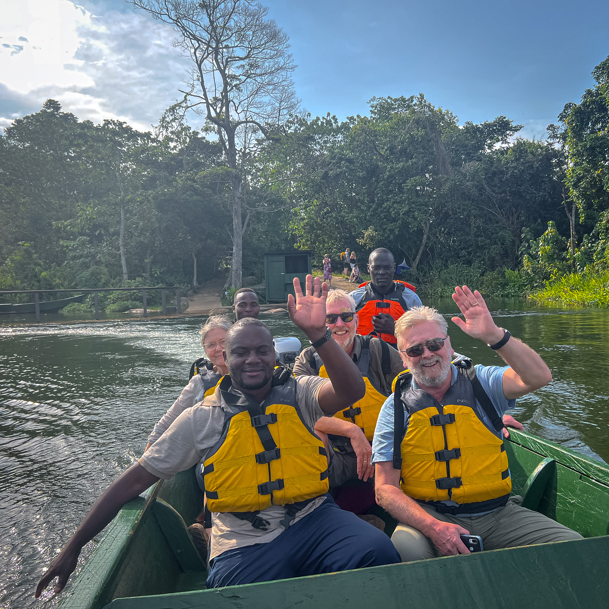 Dagen før besøket på Nyenga unnet vi oss litt luksus og tok turen til denne lodgen som ligger på en øy i Nilen. Wildwaters Lodge er en oase av en plass der det var bare å nyte det lodgen kunne gi oss av ulike opplevelser, fra naturinntrykk til matopplevelser.