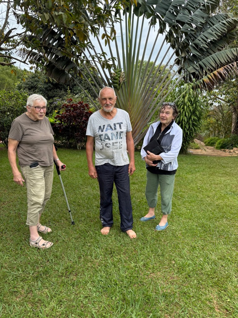 Heges mor Kirsten og hennes tante Brit er med oss denne gangen. De besøker sin lillebror Hans som er bosatt her på farmen i Buyege. Det var en lang og tidvis strevsom reise for 88 og 86 år gamle damer. Men det tålte de. Nå rusler de rundt her på eiendommen, denne fantastiske oasen som gir oss 25 – 30 graders varme året rundt. November er å foretrekke her framfor hjemme.