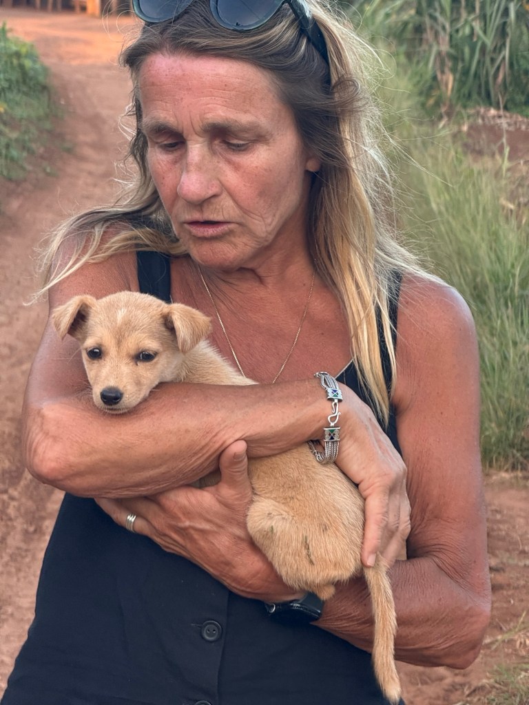 Hege løftet valpen opp og bar den nedover vegen mot farmen. Vi møtte kjentfolk som smilte og lo av «ho norske» som tok gatungen av en hund på største alvor.